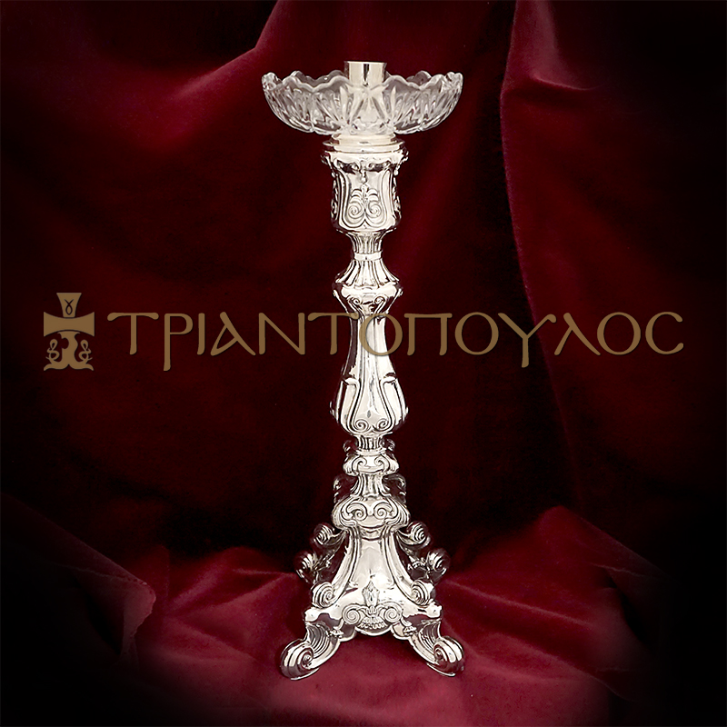 Ασημένιο μπαρόκ κηροπήγιο. Ύψος: 40cm, Διαστάσεις βάσεως: 13,3cm x 13,3cm.