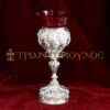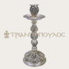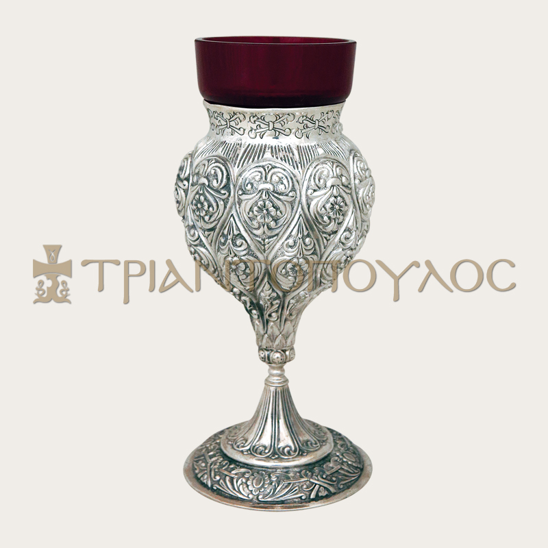 Επάργυρο χαμηλό καντήλι Aγίας Тραπέζης. Ύψος: 17cm (χωρίς την καντηλόκουπα), Διάμετρος βάσης: 10cm.