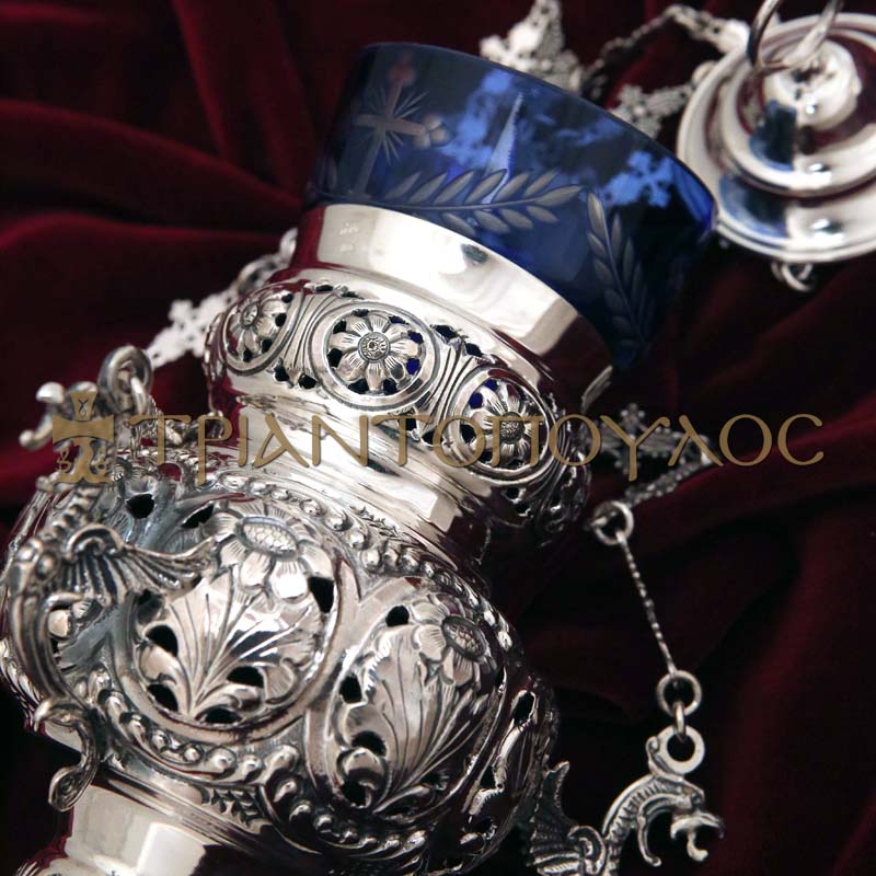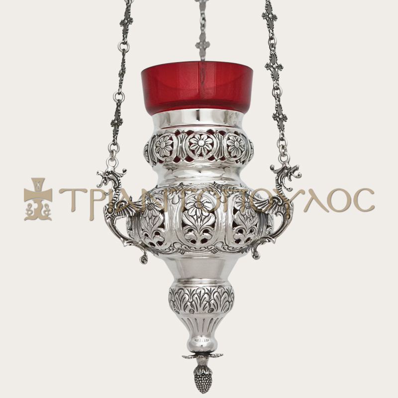 Επάργυρο καντήλι. Ύψος: 21cm, Διάμετρος: 10cm.