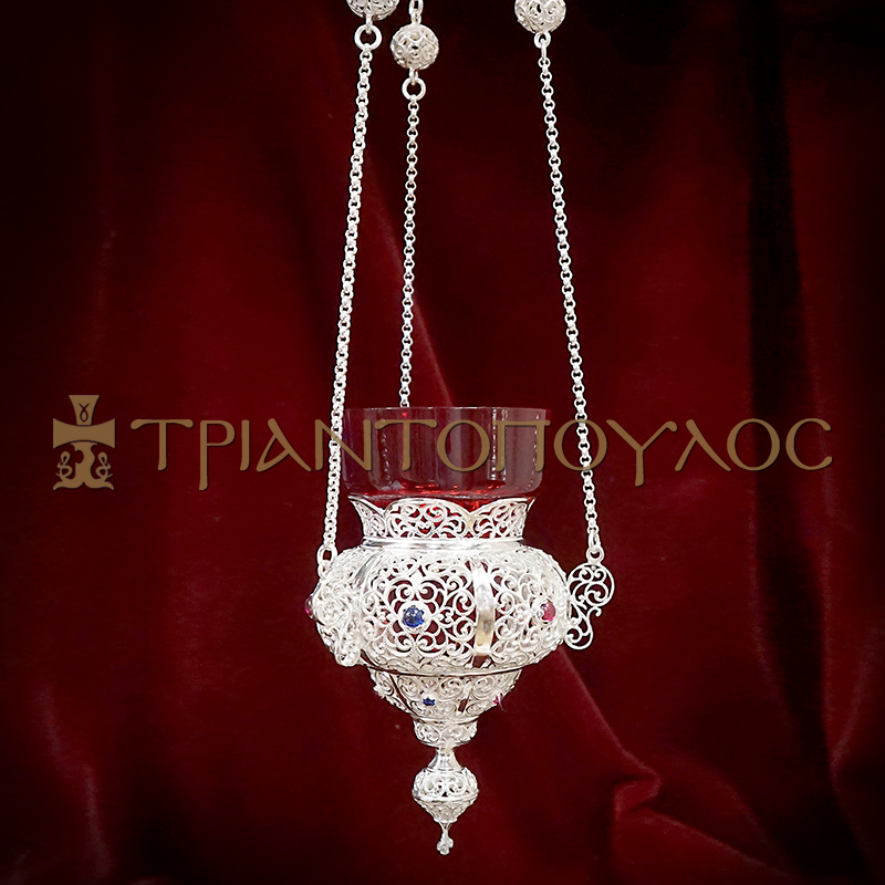 Silver gilded vigil lamp made gold gilded K24. Net height: 15 cm, diameter: 11 cm.