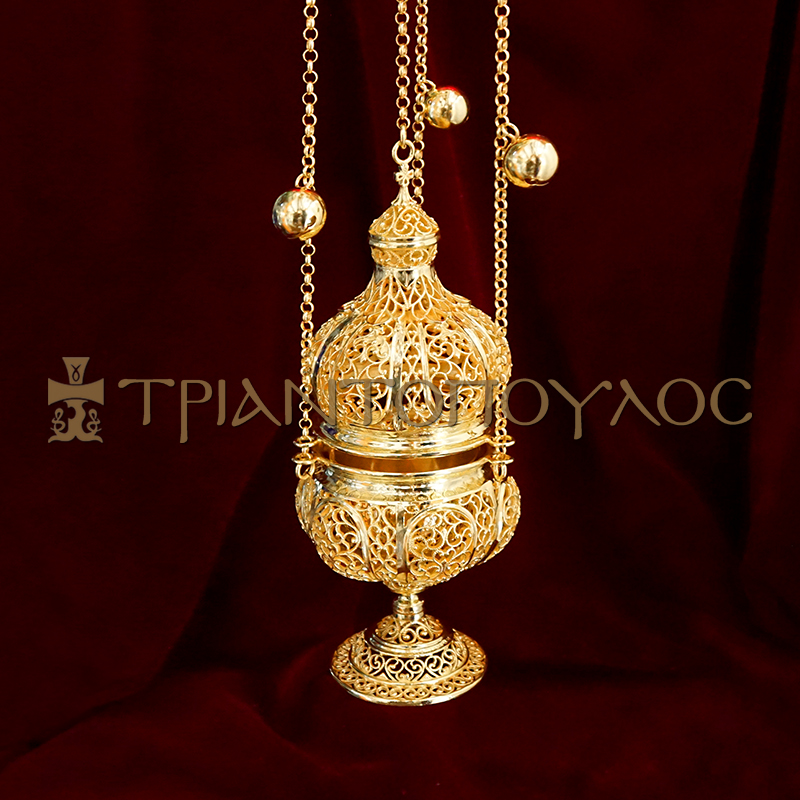 Ornate Silver gilded Censer with K24 gold plated. Height 20 cm, Diameter 9 cm.