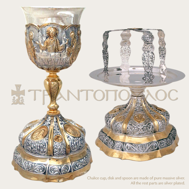 Chalice cup, disk and spoon are made of pure massive silver. All the rest parts are silver plated.